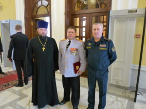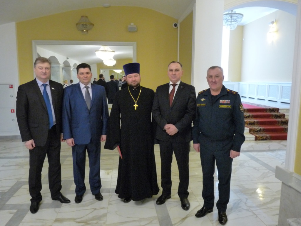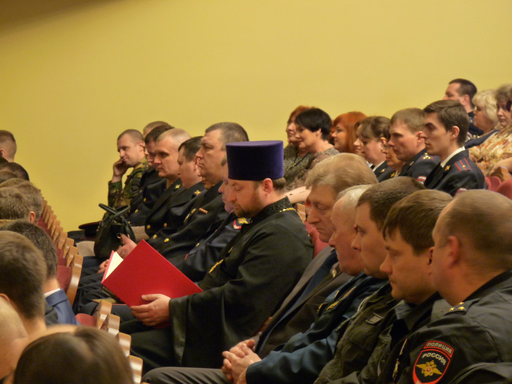 24 марта в Государственном русском драматическом театре состоялось торжественное собрание, посвященное Дню войск Национальной гвардии Российской Федерации. В мероприятии принял участие руководитель службы протокола Саранской епархии протоиерей Андрей Копейкин, который зачитал приветственное слово Высокопреосвященнейшего Зиновия, митрополита Саранского и Мордовского. В поздравительном обращении сказано: