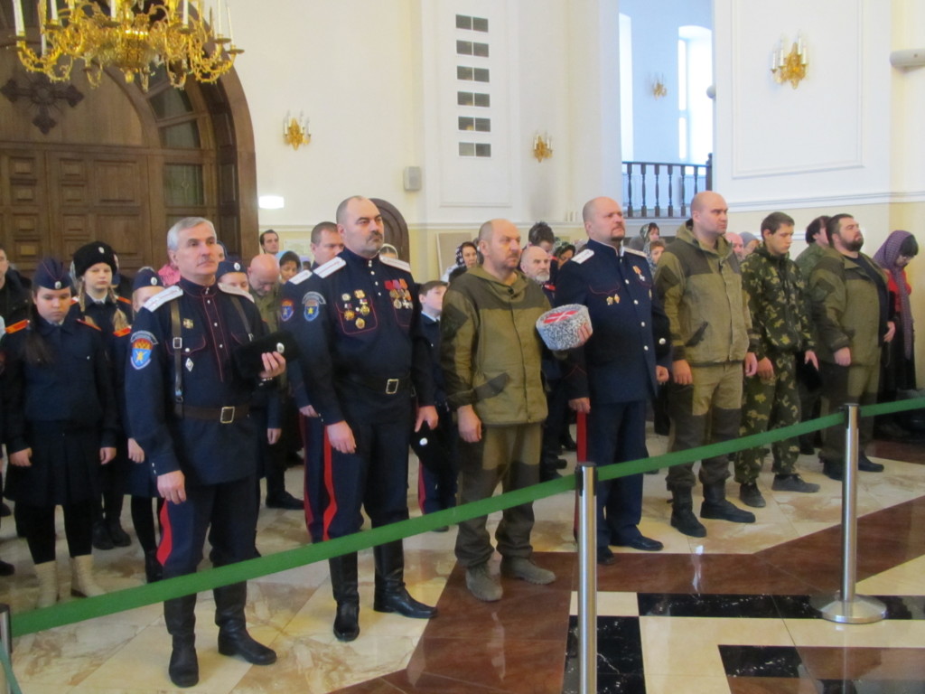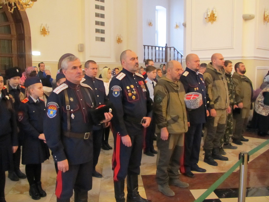 На Божественной литургии молились казаки из хуторского казачьего общества «Троицкое» во главе с атаманом Владимиром Ковинько. Дело в том, что 19 ноября 1941 года 4-й эскадрон 37-го Армавирского кавалерийского полка вместе с панфиловцами отстоял важный стратегический рубеж во время обороны Москвы от немецко-фашистских захватчиков. Новое поколение казаков свято хранит в своих сердцах память об этом величайшем сражении и каждый год молится за погибших собратьев.