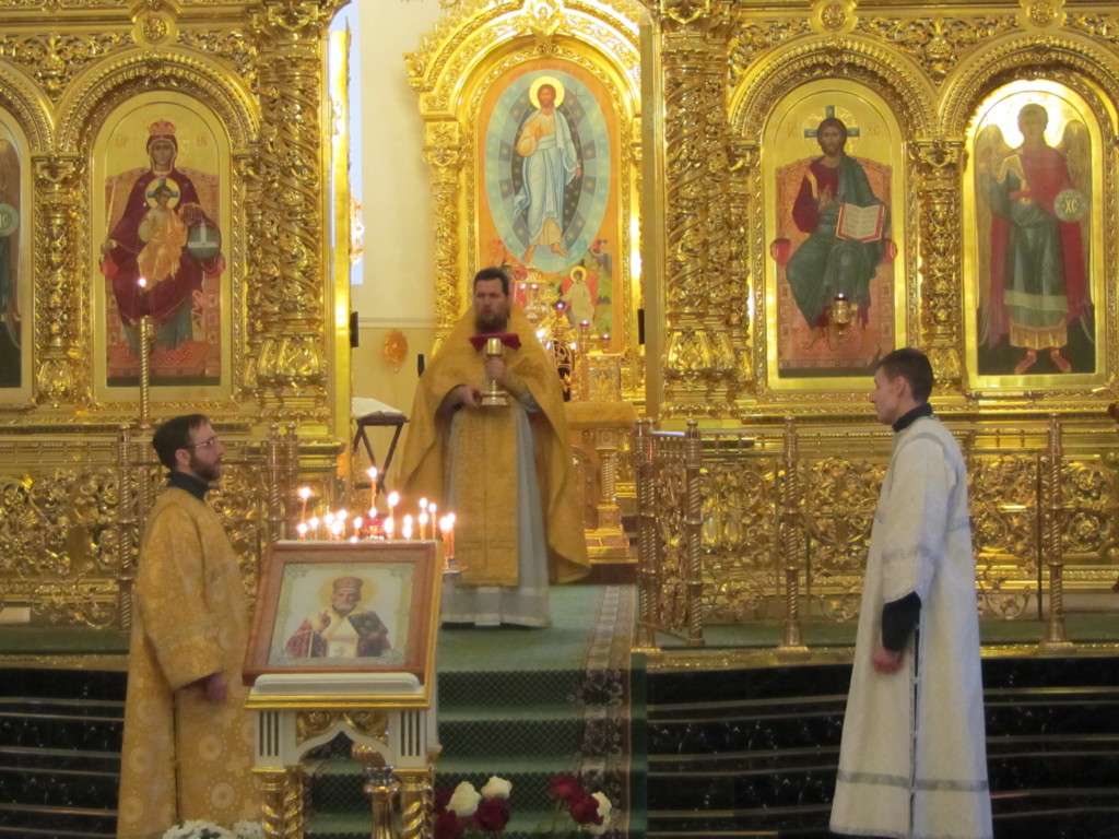 19 декабря, в праздник святителя Николая Чудотворца, протоиерей Андрей Копейкин совершил Божественную литургию в храме святых равноапостольных Мефодия и Кирилла, учителей Словенских. Настоятелю храма сослужил иерей Андрей Петрушин. В поздравительном слове протоиерей Андрей Копейкин отмечает, что святитель Николай Чудотворец совершал добрые дела всегда тайно. Раздавая свое богатство бедным людям, он сам стал бедным, но правда Божия заключается ни в социальном статусе, а в христианском милосердии и духовных благах человеческой души. Чем больше добра мы делаем другим людям, тем ближе становимся к Богу. И не случайно день памяти святителя Николая Чудотворца приходится на Рождественский пост. Наступило время, когда необходимо не только постом и молитвой очищать свою грешную душу, но и каждый из нас должен брать пример с великого угодника Божия, святителя и чудотворца Николая, чтобы оказывать помощь тем, кто находится рядом с нами и не может в силу разных жизненных обстоятельств, например, купить подарки своим детям. Тяжелые страдания переносят и немощные пожилые люди, которым тоже требуется помощь.