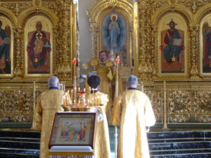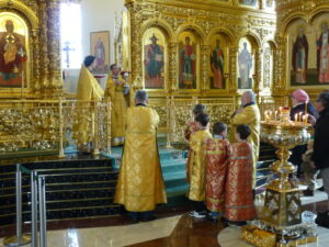 5 октября, в Неделю 17-ю по Пятидесятнице, иерей Александр Старков и иерей Николай Овсянников совершили благодарственный молебен Господу нашему Иисусу Христу и Божественную литургию в храме святых равноапостольных Мефодия и Кирилла, учителей Словенских, г. Саранска.