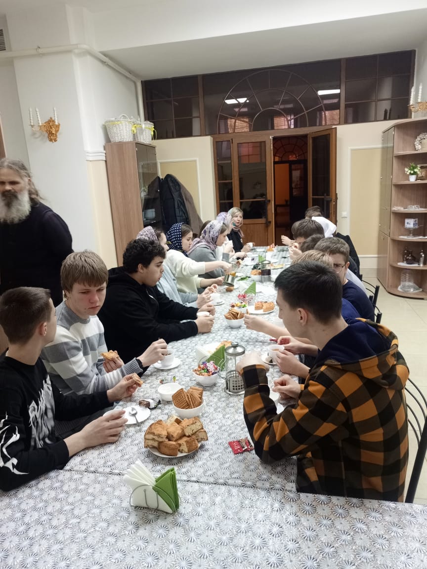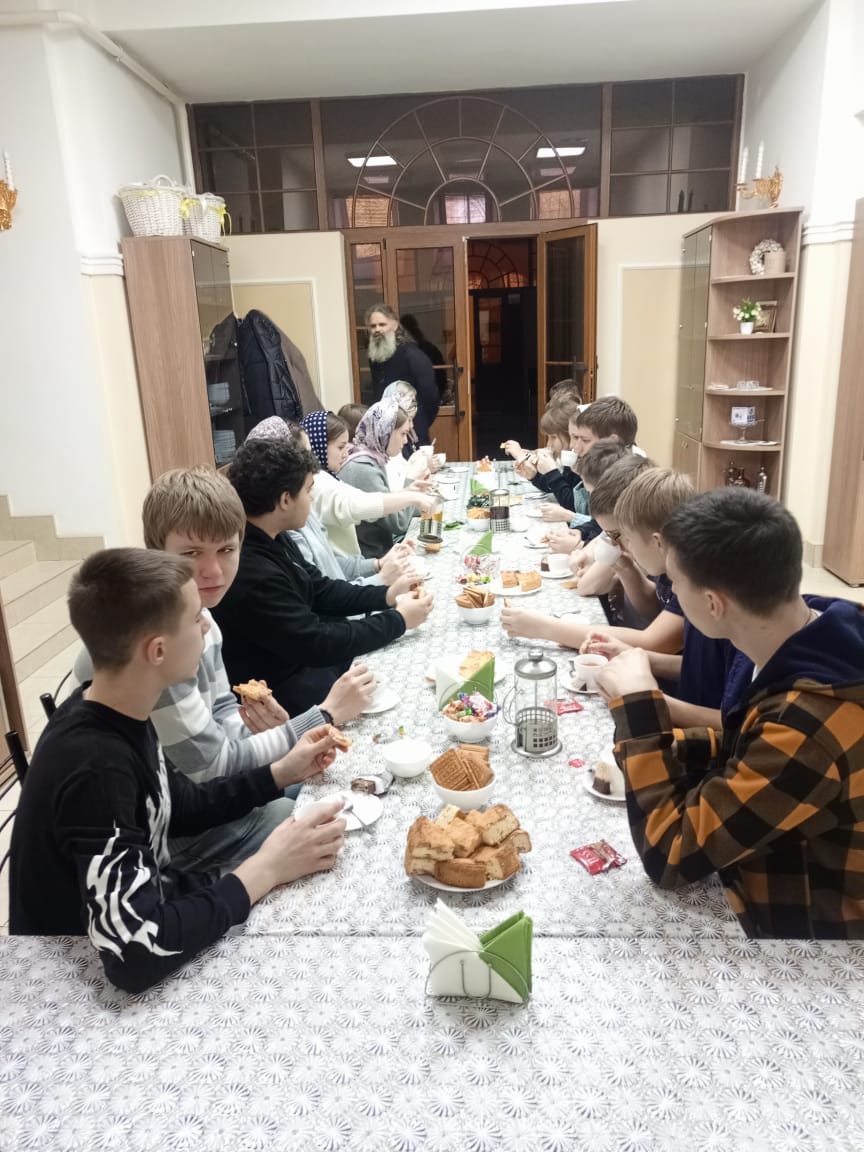 Завершилось мероприятие душевным чаепитием, во время которого школьники и священнослужитель смогли в неформальной обстановке обсудить интересующие вопросы, поделиться впечатлениями и эмоциями от экскурсии.
