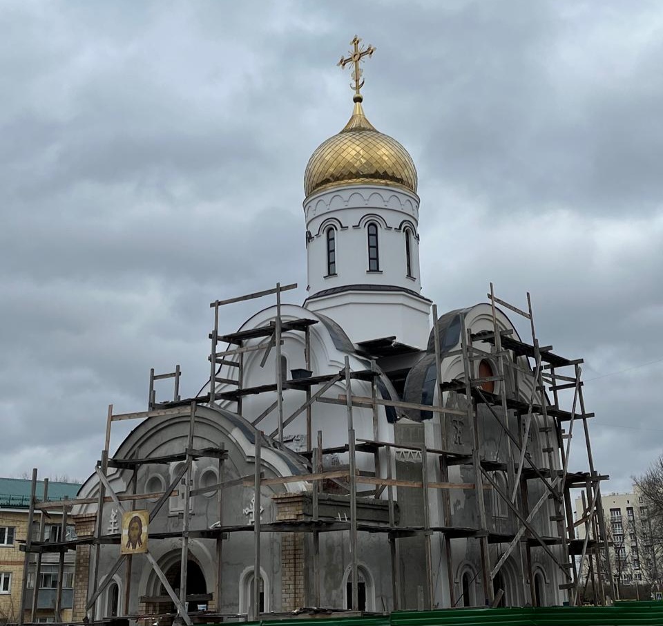В настоящий момент в Спасском храме ведутся штукатурные работы на своде. Необходимо по верёвке подавать строительный раствор.