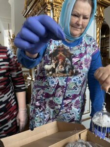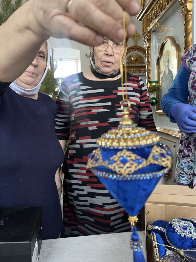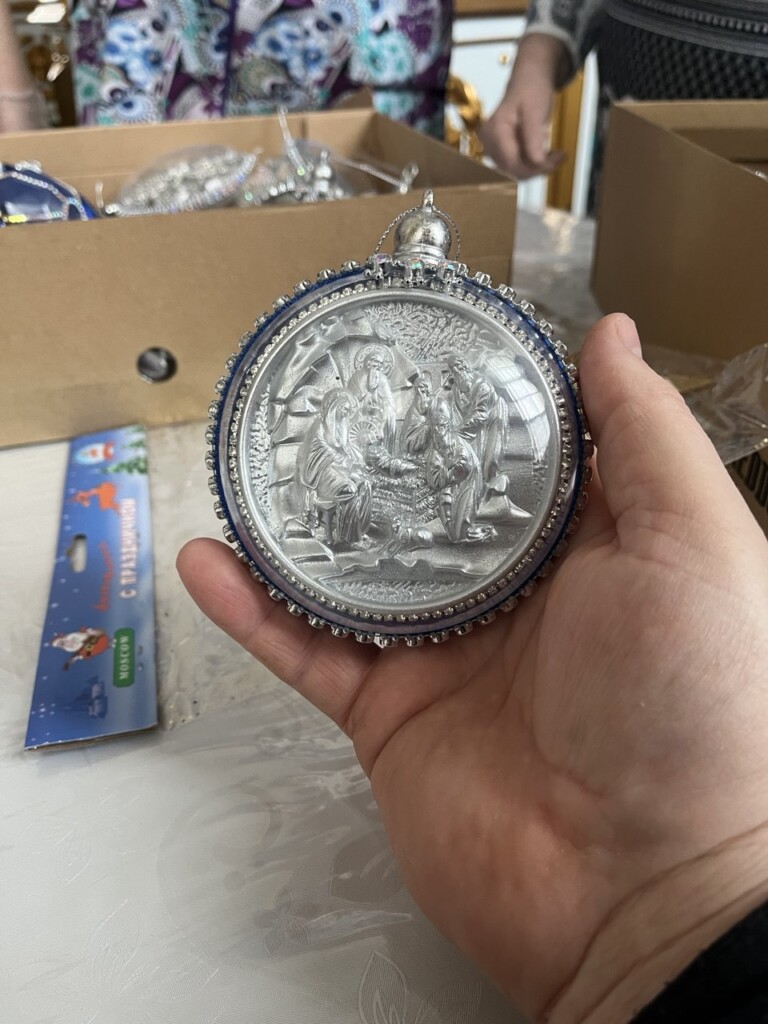 Талантливая прихожанка храма Елена Николаевна Барышева заливала в специальные силиконовые формы пластик, чтобы потом из фигурок создать рождественские сцены. И теперь их можно рассматривать сквозь стеклянные шары, украшенные витиеватыми узорами. Прихожане говорят, что они удивляются таким шедеврам и могут долгое время любоваться игрушками, находясь словно в музее.