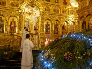 В ночь с 6 на 7 января, в праздник Рождества Господа Бога и Спаса нашего Иисуса Христа, благочинный Юго-Западного и ичалковского церковного округов протоиерей Иоанн Просвирнин в сослужении иерея Артемия Мелёхина совершил в храме святых равноапостольных Мефодия и Кирилла, учителей Словенских, г. Саранска Божественную литургию святителя Иоанна Златоуста.
