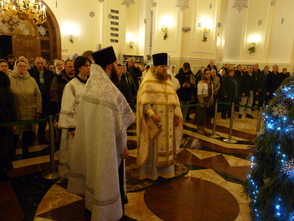 Протоиерей Иоанн Просвирнин обратился к верующим с пастырским словом. Благочинный поблагодарил всех, кто принимал участие в благоукрашении храма, и поздравил собравшихся с Рождеством Христовым — событием, которое открыло роду человеческому врата в Царствие Небесное.
