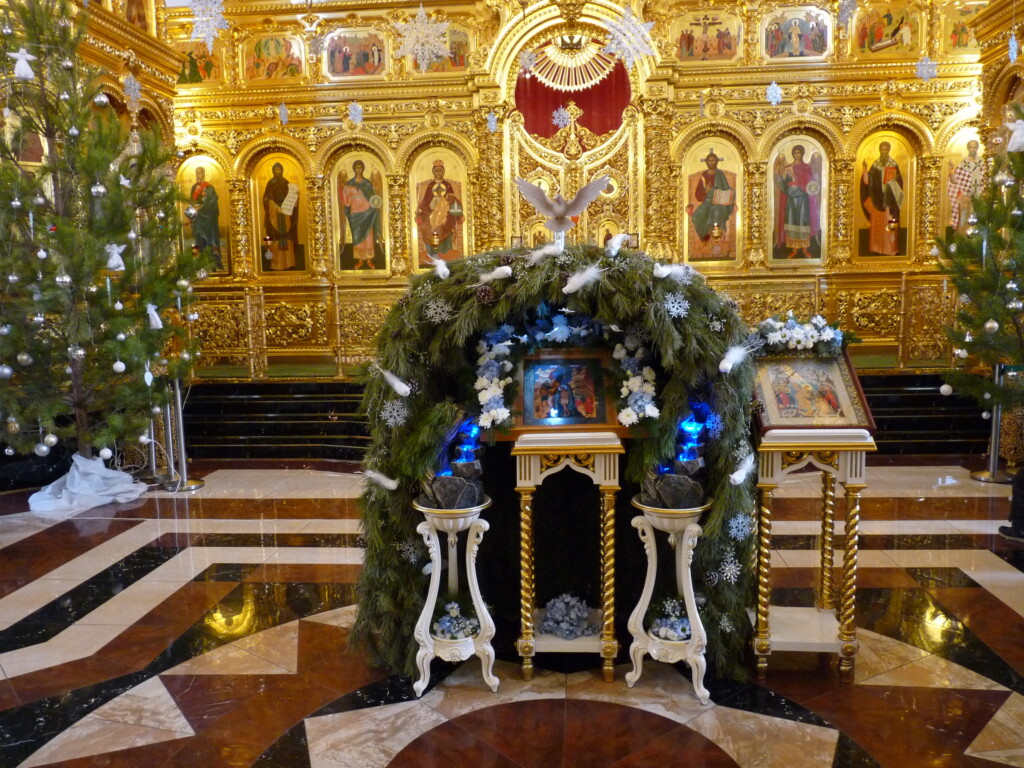 В храме святых равноапостольных Мефодия и Кирилла, учителей Словенских, г. Саранска необычно украсили аналой, на котором находится икона «Крещение Господне (Богоявление)». С обеих сторон слышится мягкое журчание воды. Это струятся ручьи. Они текут сверху вниз по камням, воссоздавая образ реки Иордан. А синяя подсветка придает особую атмосферу приближения праздника Крещения Господня. Над иконой парит белый голубь — видимый образ Святаго Духа. В Евангелии сказано: «Когда же крестился весь народ, и Иисус, крестившись, молился: отверзлось небо, и Дух Святый нисшел на Него в телесном виде, как голубь» (Лк. 3: 21). Каждый, кто подходит к иконе, на мгновение соприкасается с евангельской реальностью.