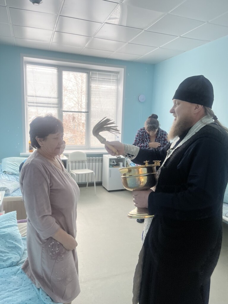 В дни празднования Крещения Господня священнослужители Юго-Западного благочиния г. Саранска посещают больницы, чтобы окропить великой агиасмой людей, страдающих недугами. Этот благочестивый обычай напоминает о милосердии Божием и духовной поддержке, которая так необходима больным в дни великого праздника.