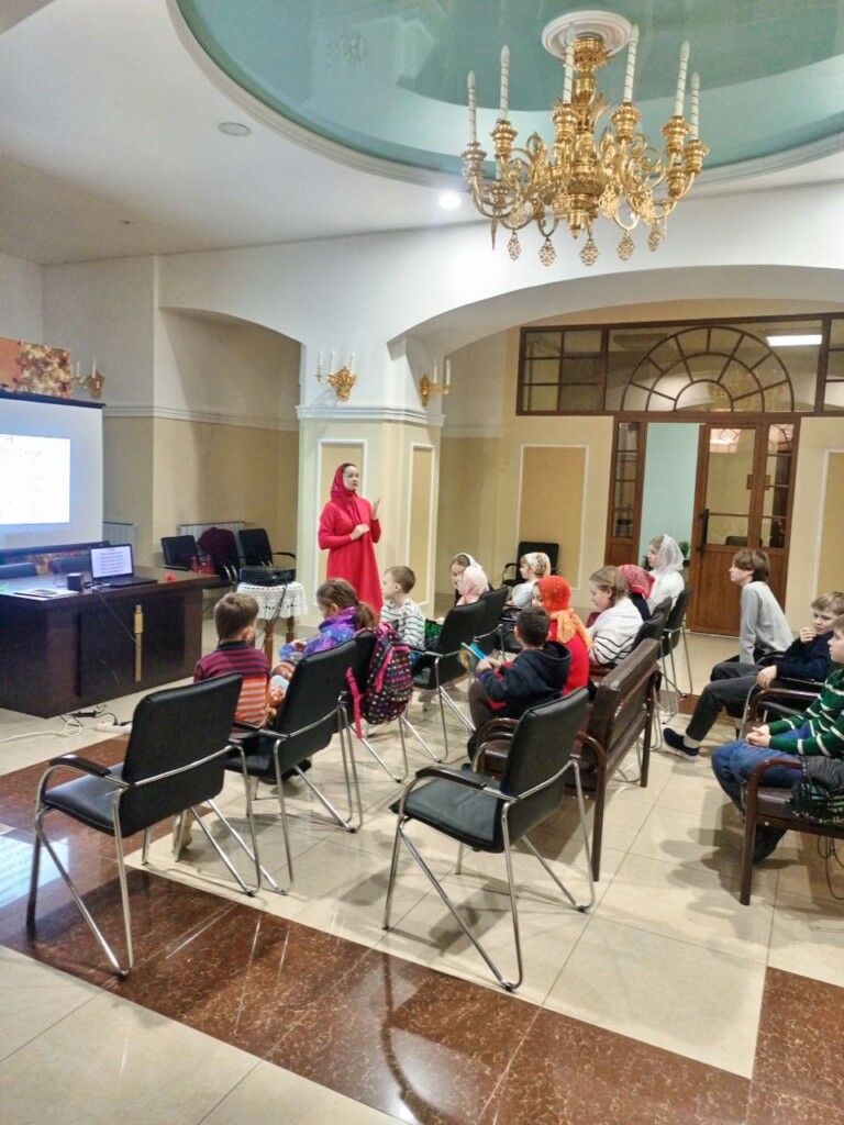 На уроке церковного пения Евгения Валерьевна Долинова рассказала детям о значении Прощёного воскресенья — дня, который напоминает нам о важности примирения с ближними и внутренней готовности к покаянию. Затем ребята разучили две песни: «Прощёное воскресенье» и «Семь царских седмиц Великого поста».