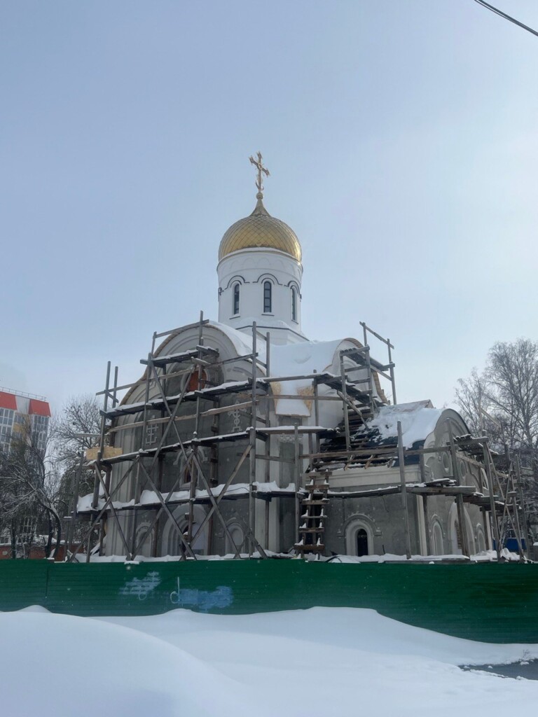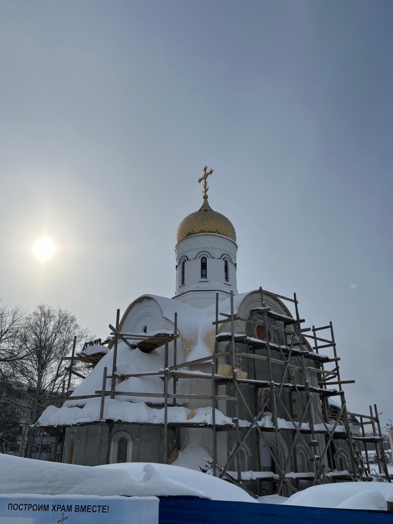 Спасский храм в Саранске постепенно строится. Работа не стоит на месте даже зимой. 26 февраля завершили обшивку фанерой стропильной системы, расположенной над центральной частью храма (между закомарами и барабаном). Мастера доделали углы, пока позволяли погодные условия. Теперь рабочие будут обшивать стропильную систему над трапезной частью и алтарем.